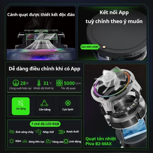 Piva B2 MAX – Quạt tản nhiệt thông minh dành cho máy tính bảng Quạt Piva B2MAX làm lạnh nhanh có APP kết nối PIVAVN